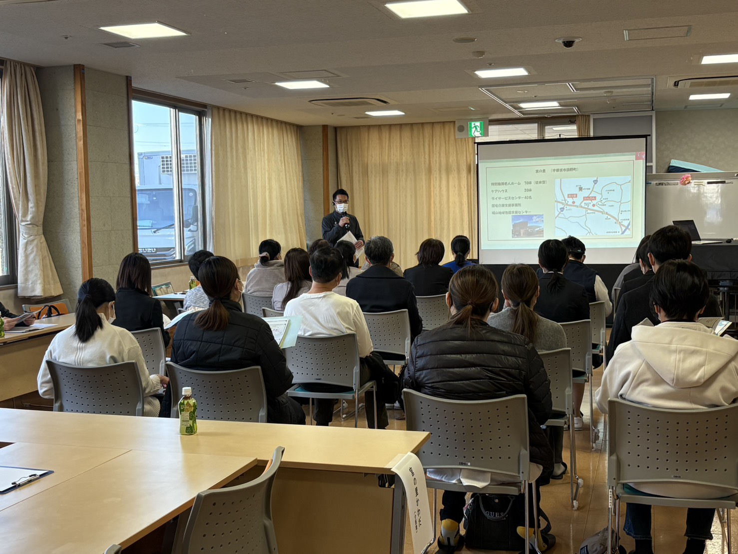 前の記事記事の一覧に戻る 企業説明会・見学会を行いました 総合 2025年12月18日 12月17日、宮の里かわだにて当法人の説明会と見学会を行いました。 寒い時期ですが多くの方のご来場、ありがとうございました。 当日は労働環境などの説明のあと、5つの事業所の管理者との相談や 宮の里かわだの施設内をまわりながら、ICT機器の説明や介護ロボットの体験をまじえて 実際の現場をご覧いただきました。 前の記事記事の一覧に戻る