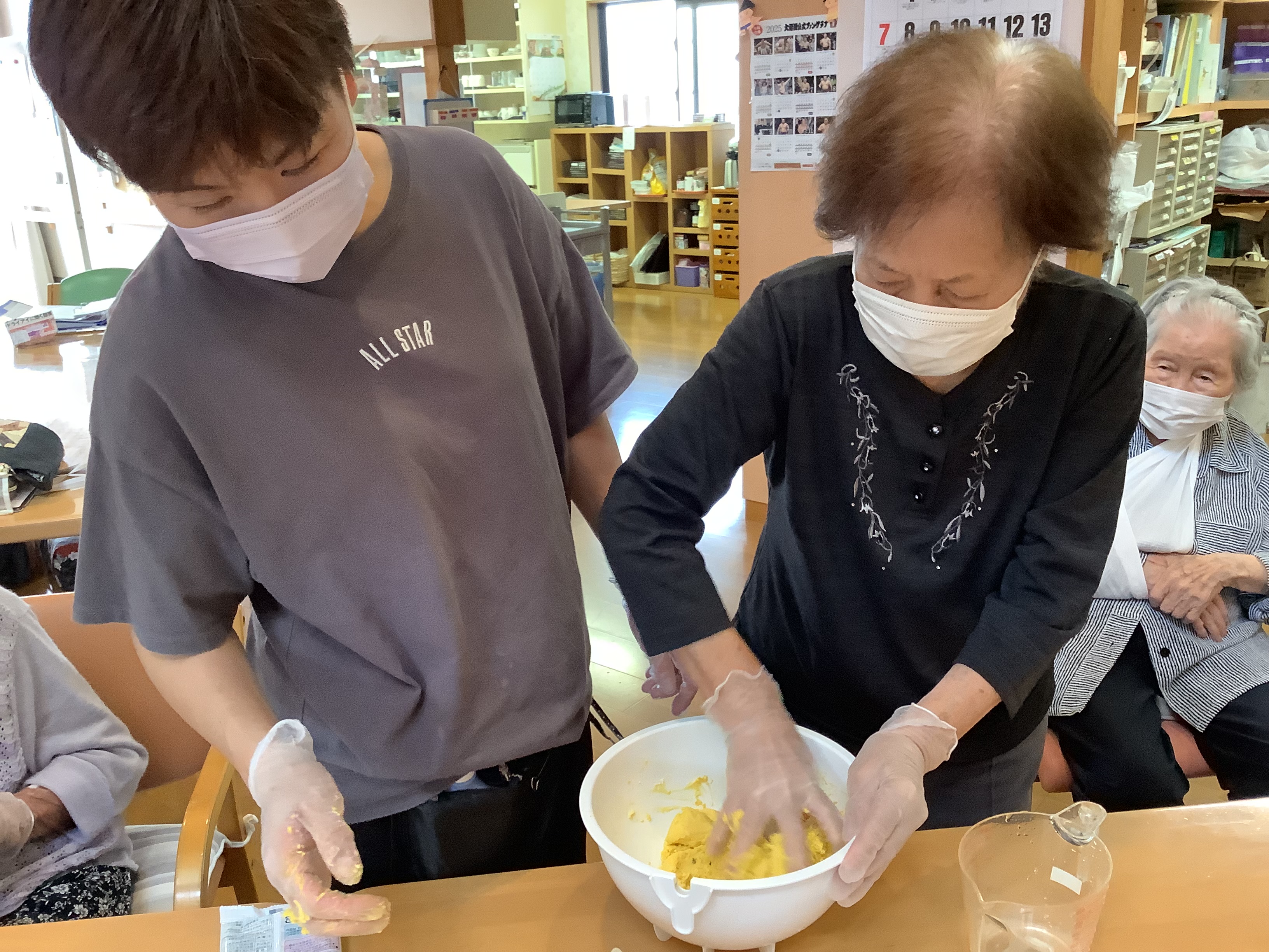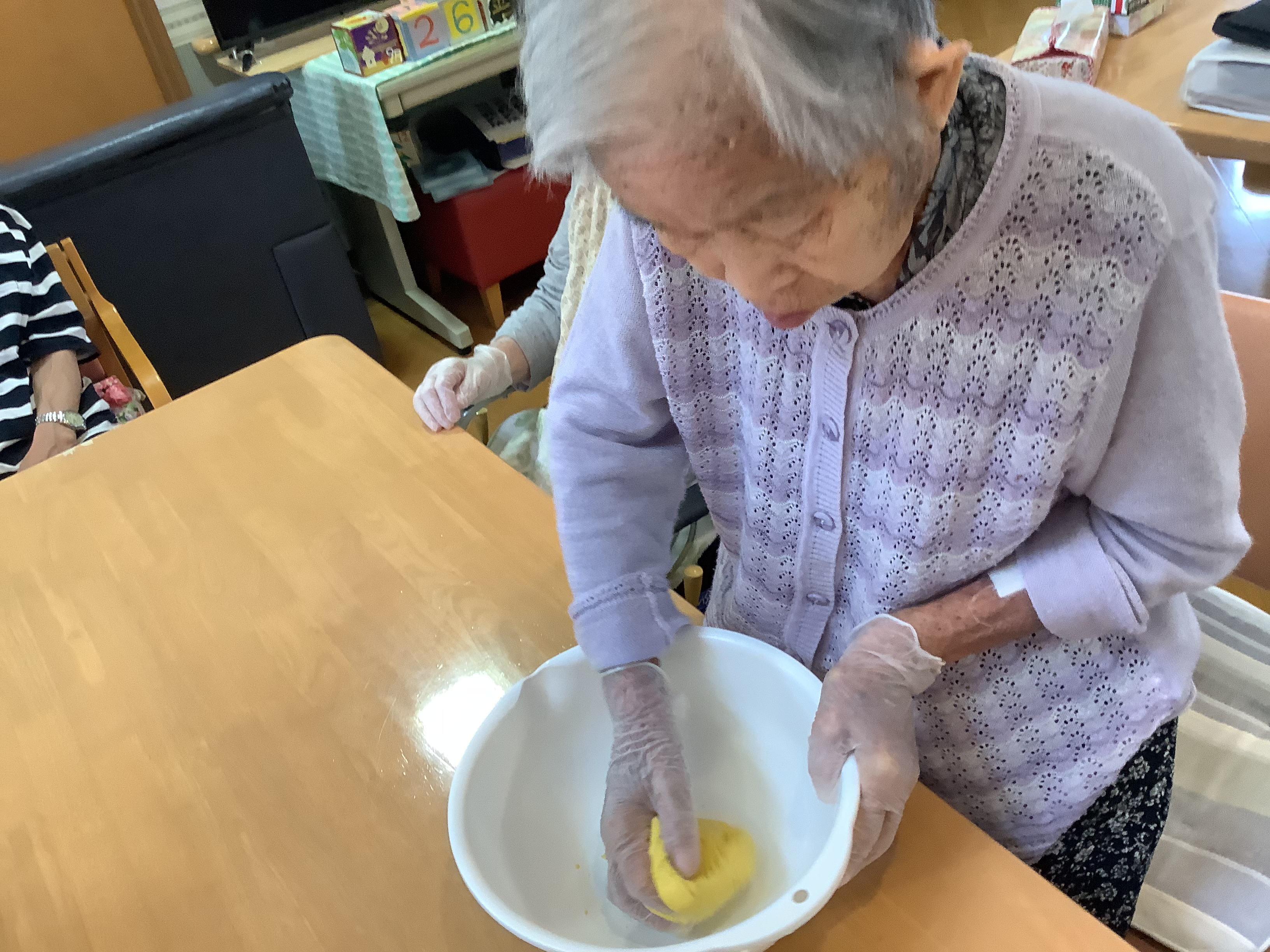 お久しぶりです🙌小多機ふじおかです😊💕 9月26日のレクリエーションになりますが 十五夜が近いということ、お月見にちなんで 『かぼちゃだんご』を作りました(`・ω・´)✊✨ 白玉粉にカボチャを混ぜるとキレイな黄色いお団子ができました🎑🎵 だんごを丸める作業は当日の利用者様全員で行い、思い出にもなりました😌 肝心のお味は・・・ やわらか~く、あま~い、かぼちゃだんごでした💗💗