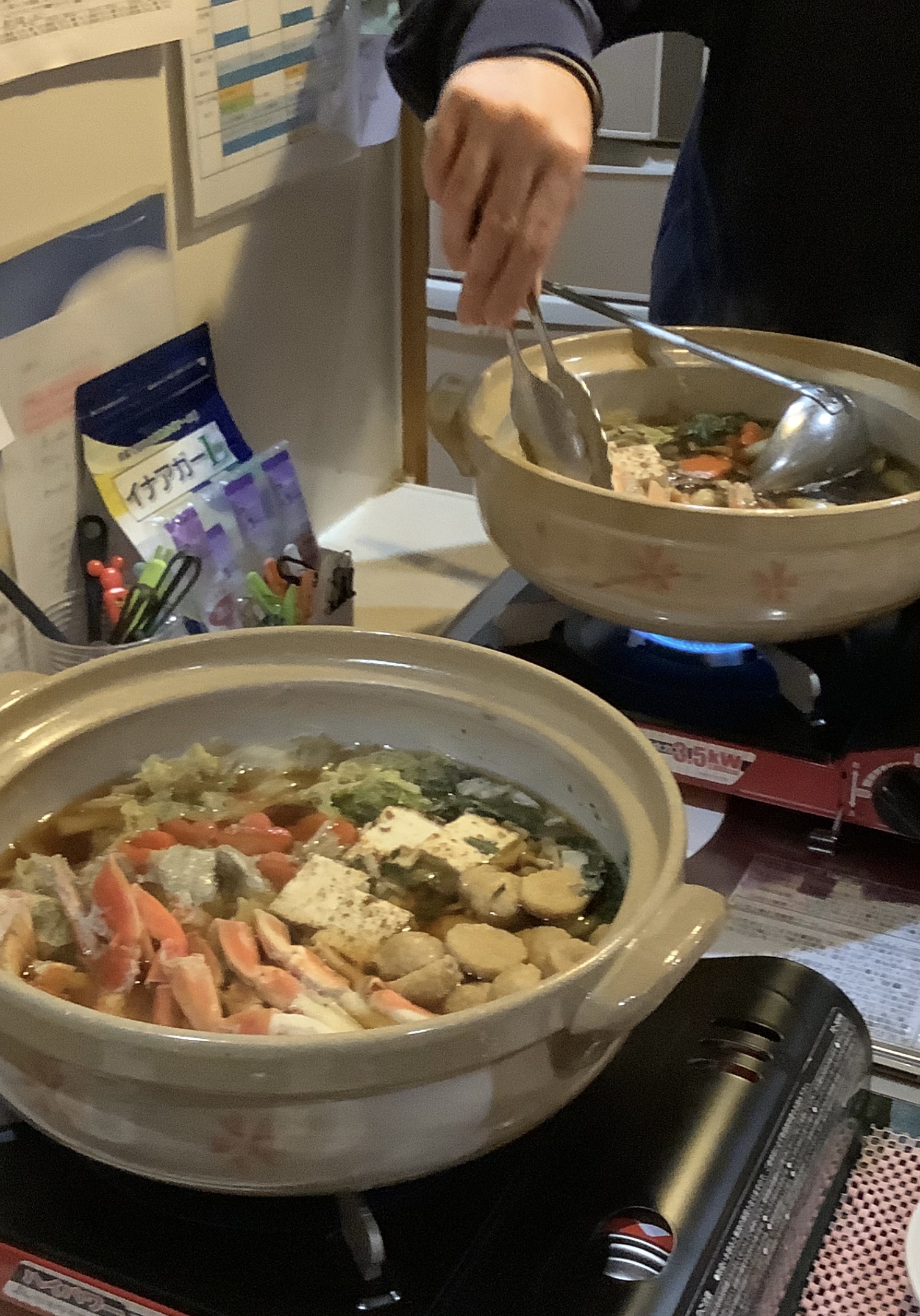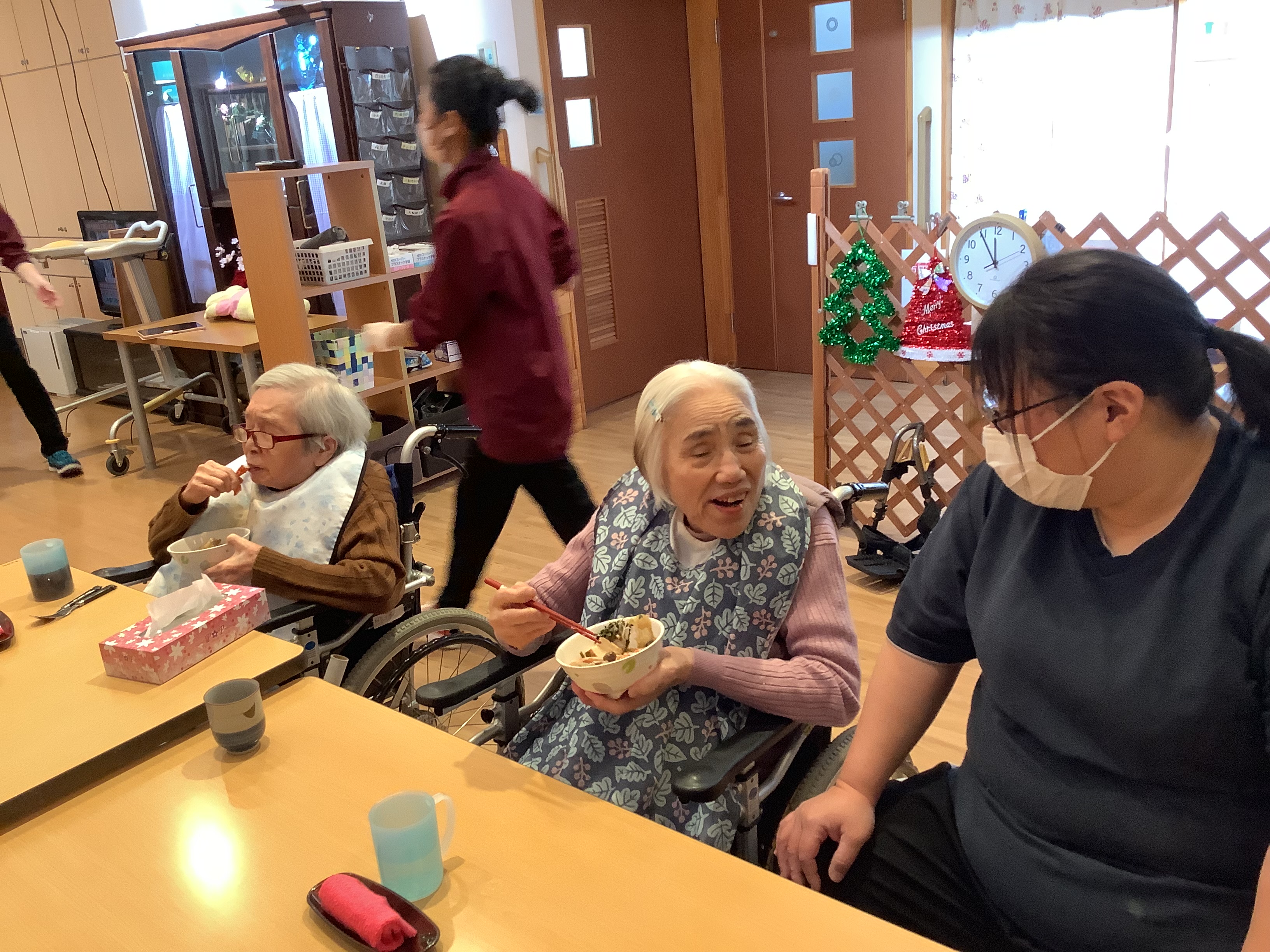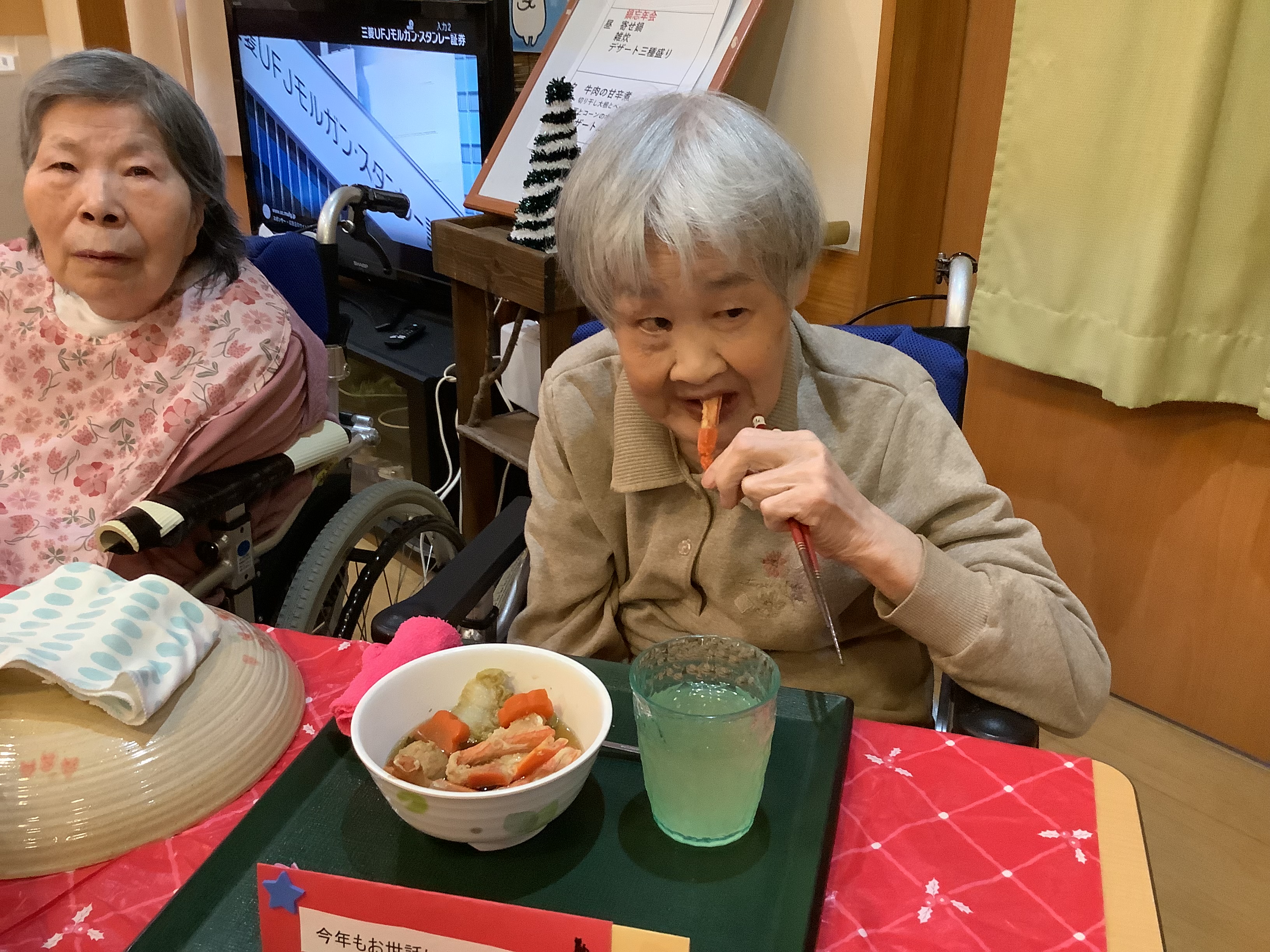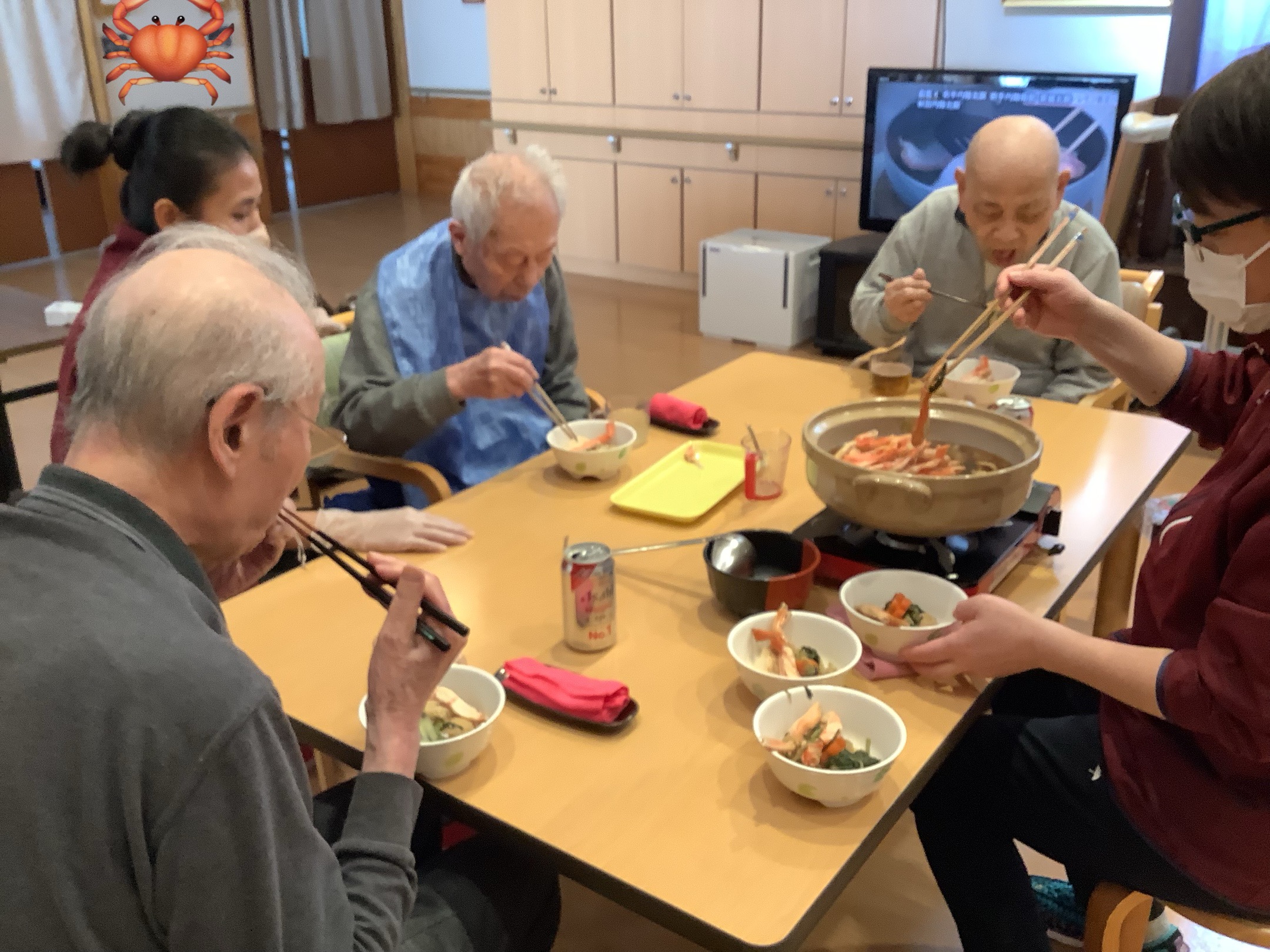 もうすぐ冬至を迎え、日脚の短さを感じる季節になってきました⛄ 12月12日、宮の里ふじおかでは恒例の鍋忘年会を行いました🎉 具材はカニ🦀が一番人気! ノンアルコールビール🍺やジュースを飲んだり、鍋を食べたり、雑炊にしてみたり… 施設内は笑顔で溢れていました😊 ご馳走様でした✨