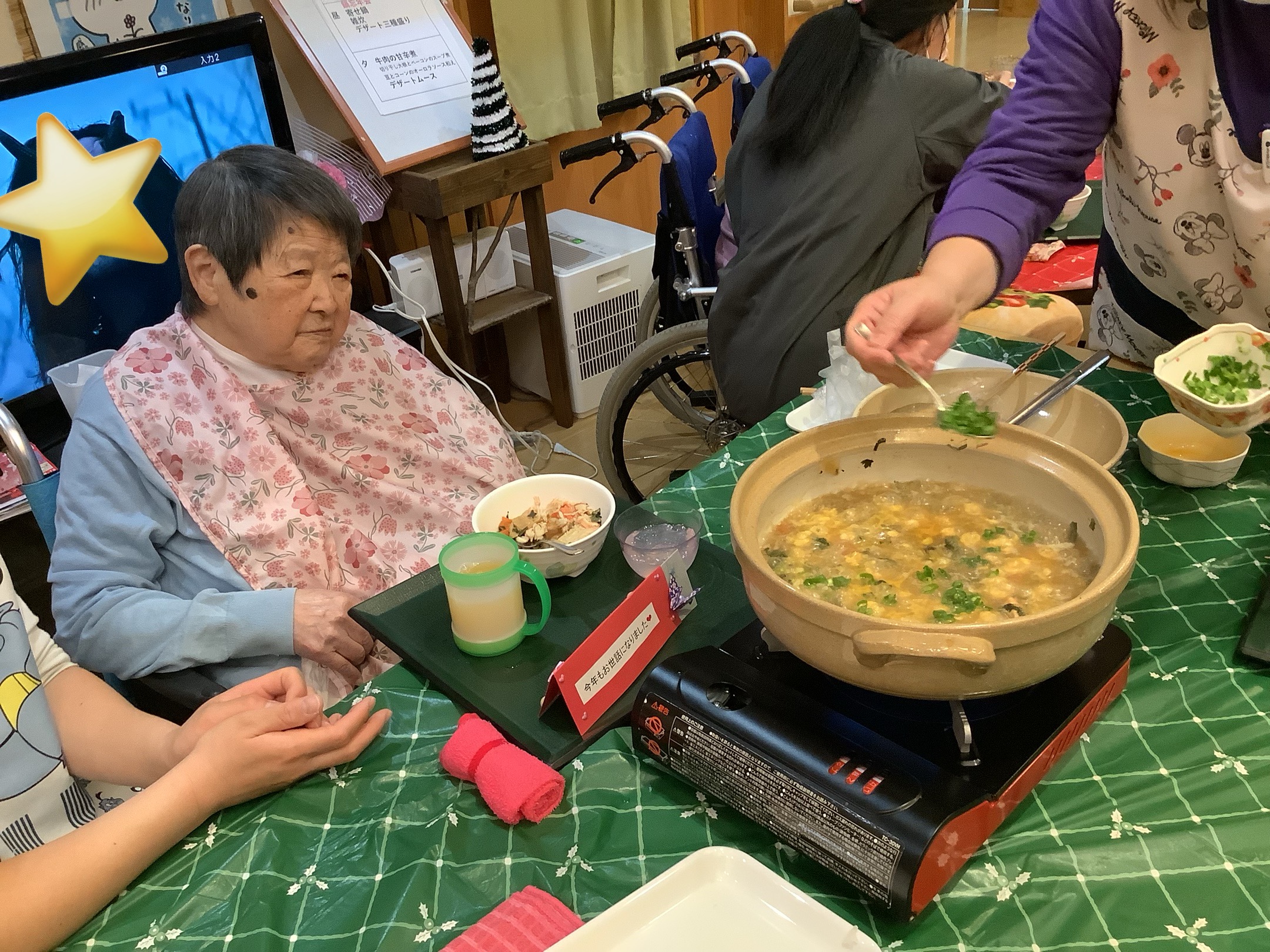 前の記事記事の一覧に戻る次の記事 🦀鍋忘年会🦀 宮の里ふじおか 2025年12月18日 もうすぐ冬至を迎え、日脚の短さを感じる季節になってきました⛄ 12月12日、宮の里ふじおかでは恒例の鍋忘年会を行いました🎉 具材はカニ🦀が一番人気! ノンアルコールビール🍺やジュースを飲んだり、鍋を食べたり、雑炊にしてみたり… 施設内は笑顔で溢れていました😊 ご馳走様でした✨ 前の記事記事の一覧に戻る次の記事