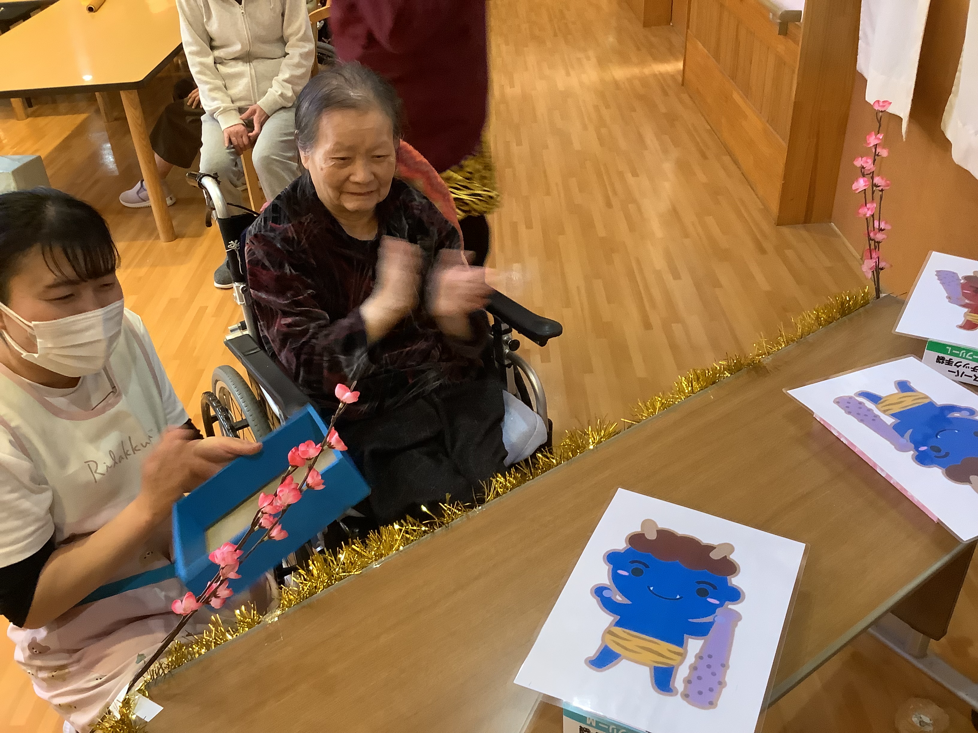 立春を過ぎ、本格的な春の訪れが待たれる頃となりました🌸 ふじおかでは、節分の日に毎年恒例豆まきを行いました✨ 豆は、施設特製ビッグなお豆です😊 大きなお豆で鬼退治👹!! みんなで楽しく節分行事ができました✨ 立春が過ぎたとはいえ、まだまだ寒さは続きます。どうぞお体にお気をつけてお過ごしください🍀